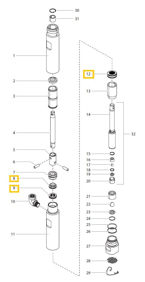0558730 Набор для замены уплотнения #2 (Ремкомплект насоса WAGNER PS- 3.39) (вкл. пункты 8–9 и 12)